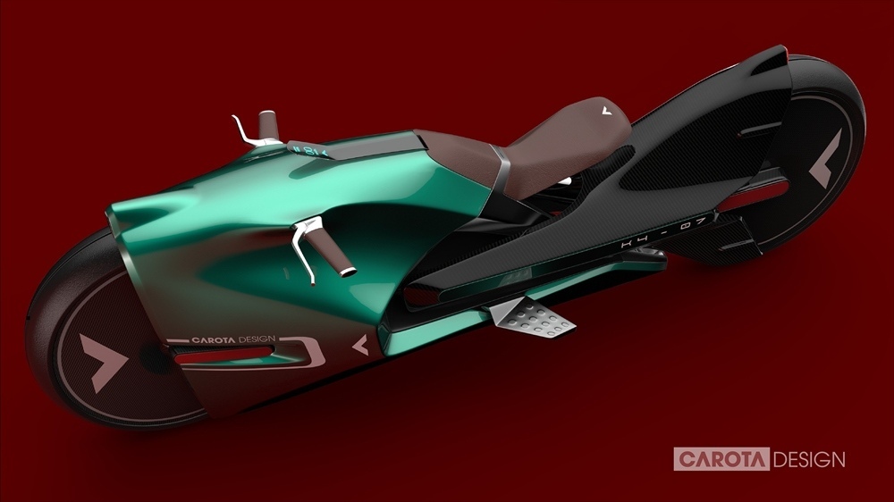 Концепт Carota Design K4-07 — попытка выйти далеко за границы современного мотодизайна. Концепция является всего лишь мечтой, наброском идеи. Задняя часть, включая колесо, напоминают хвост рыбы, в то время как передняя часть имеет обтекаемую форму, но не имеет ветровика. Подразумевается лежачая посадка мотоциклиста.